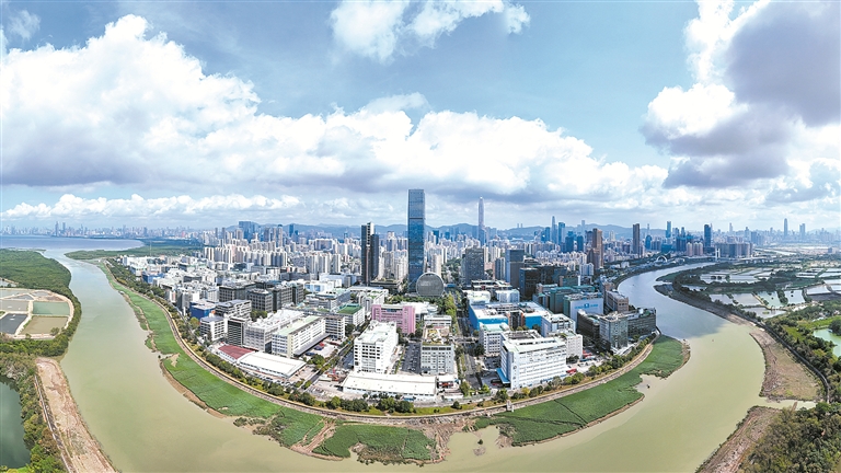 “十四五”以来,作为粤港澳大湾区以科技创新为主题的国家级战略平台,河套深港科技创新合作区开发建设进展快速,向着打造“世界级科研枢纽”的目标稳步迈进。图为河套深港科技创新合作区。