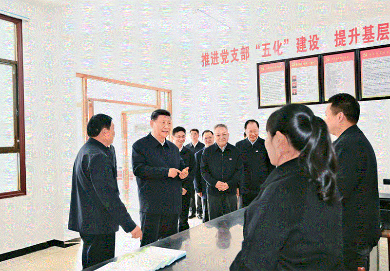 2024年3月18日至21日,中共中央总书记、国家主席、中央军委主席习近平在湖南考察。这是19日下午 ,习近平在常德市鼎城区谢家铺镇港中坪村党群服务中心了解当地为基层减负、提升基层治理效能等情况。 新华社记者 燕雁/摄